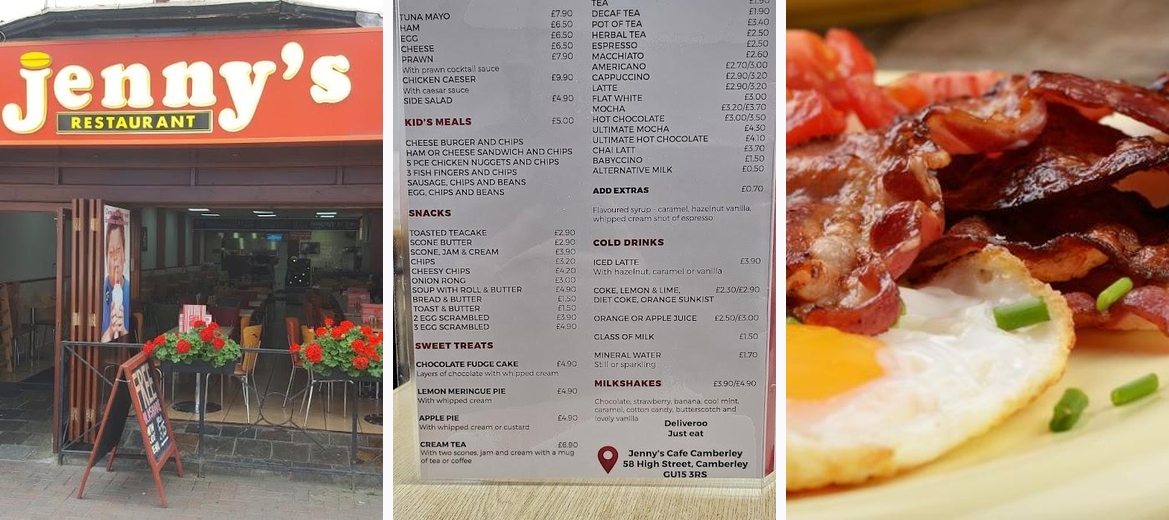 Discover Jenny's Restaurants in Camberley, your go-to cafe for delicious cooked meals, irresistible milkshakes, and value-packed options. Enjoy a traditional menu featuring mouthwatering sausages and bacon, crafted from the finest ingredients. Join us at 58 High St for a delightful dining experience!