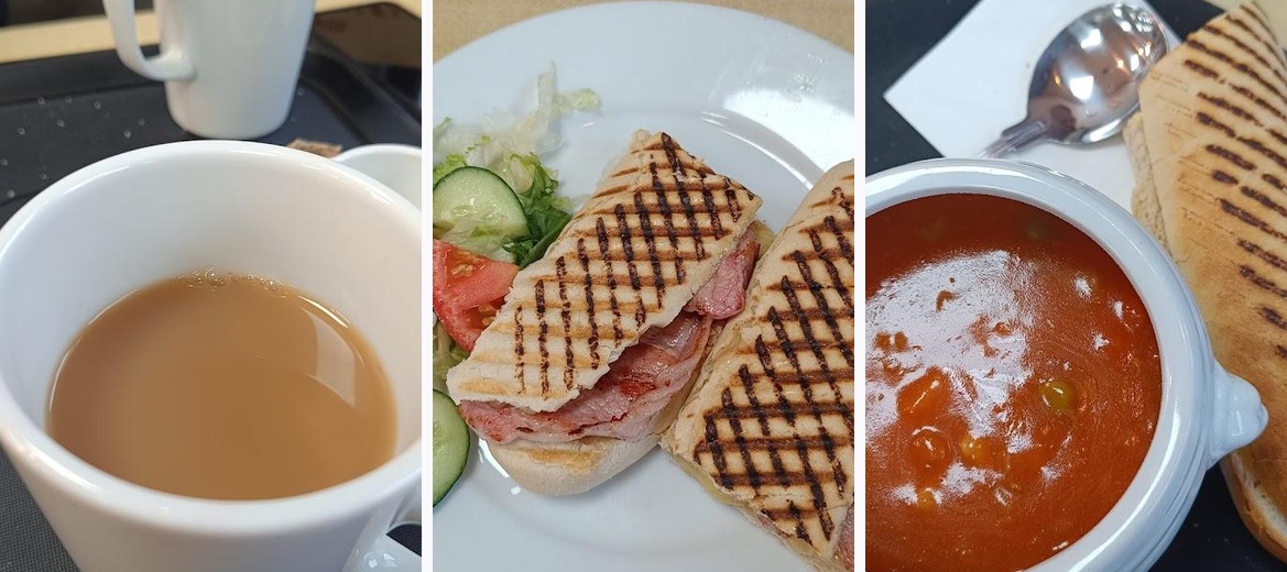 Came today for breakfast. The waiter was brilliant. He carried my tray of drinks and cutlery for me. Food was was delicious freshly cooked. Wonderful thick toast with perfect poached eggs and my husband had a big delicious breakfast..they had de cafinated tea as well as normal tea. Service was brilliant. Really enjoyed our breakfast..lots of choice on the menu for breakfast and lunch. Very clean cafe. Looking forward to returning soon.