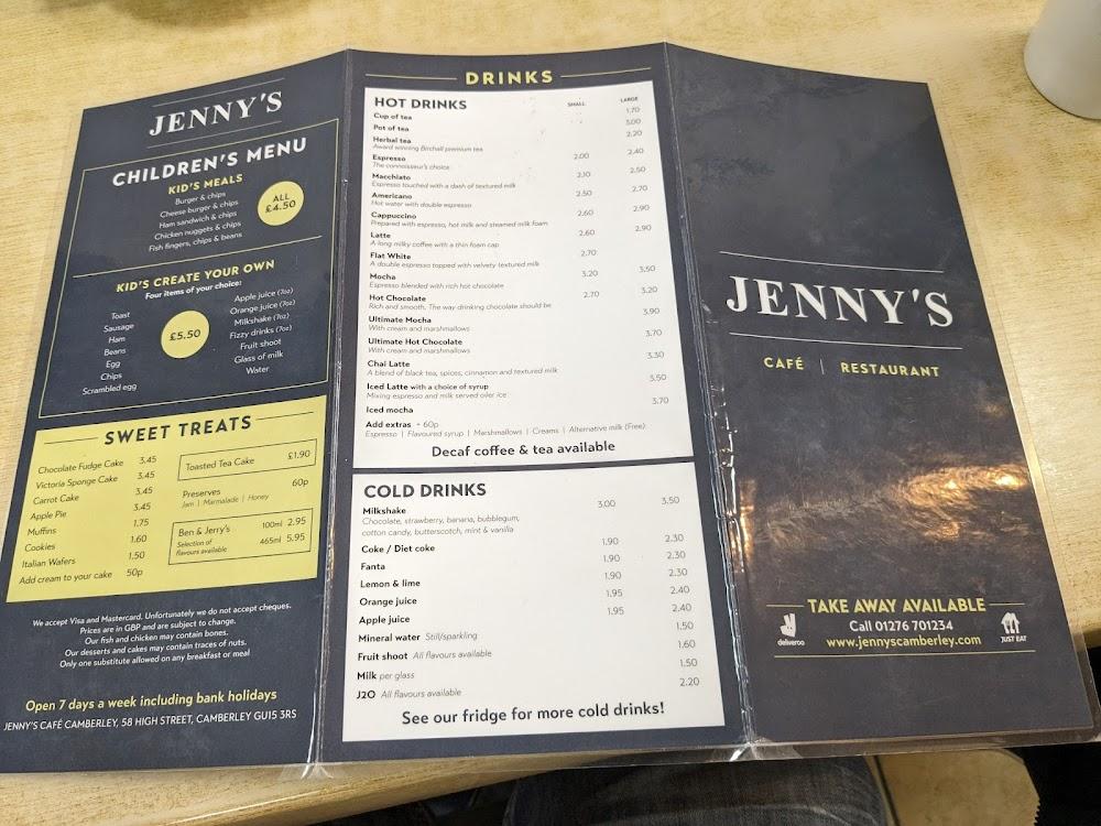 Nestled in the heart of Camberley, Jenny's Restaurants brings a casual vibe that attracts families, tourists, and locals alike. This café is easily accessible, with wheelchair-friendly facilities including parking, seating, and toilets. The atmosphere is relaxed yet vibrant, making it ideal for unwinding or even working on a laptop. The café has quickly become a favorite spot due to its prime location on High Street, just a stone's throw from the bustling town center. With free street parking available, stopping in for a quick breakfast or a leisurely lunch becomes a breeze. The community feels alive here, with a blend of familiar faces and newcomers enjoying the friendly service. Jenny's exudes warmth from its smiling staff who are always ready to assist. Whether you’re grabbing a coffee on the go or indulging in a full meal, every experience leaves patrons looking forward to their next visit.